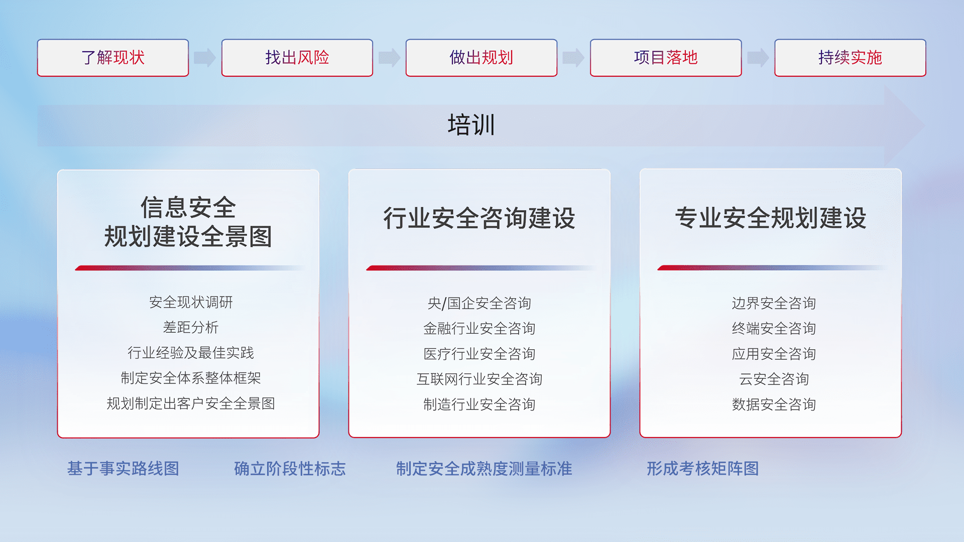 梳理客户信息安全现状调研、、、差距分析结果,,,结合行业先进经验及最佳实践,,制订客户的信息安全管控体系总结架构,,,,最终形成一个完整的客户信息安全规划与建设的全景图。。