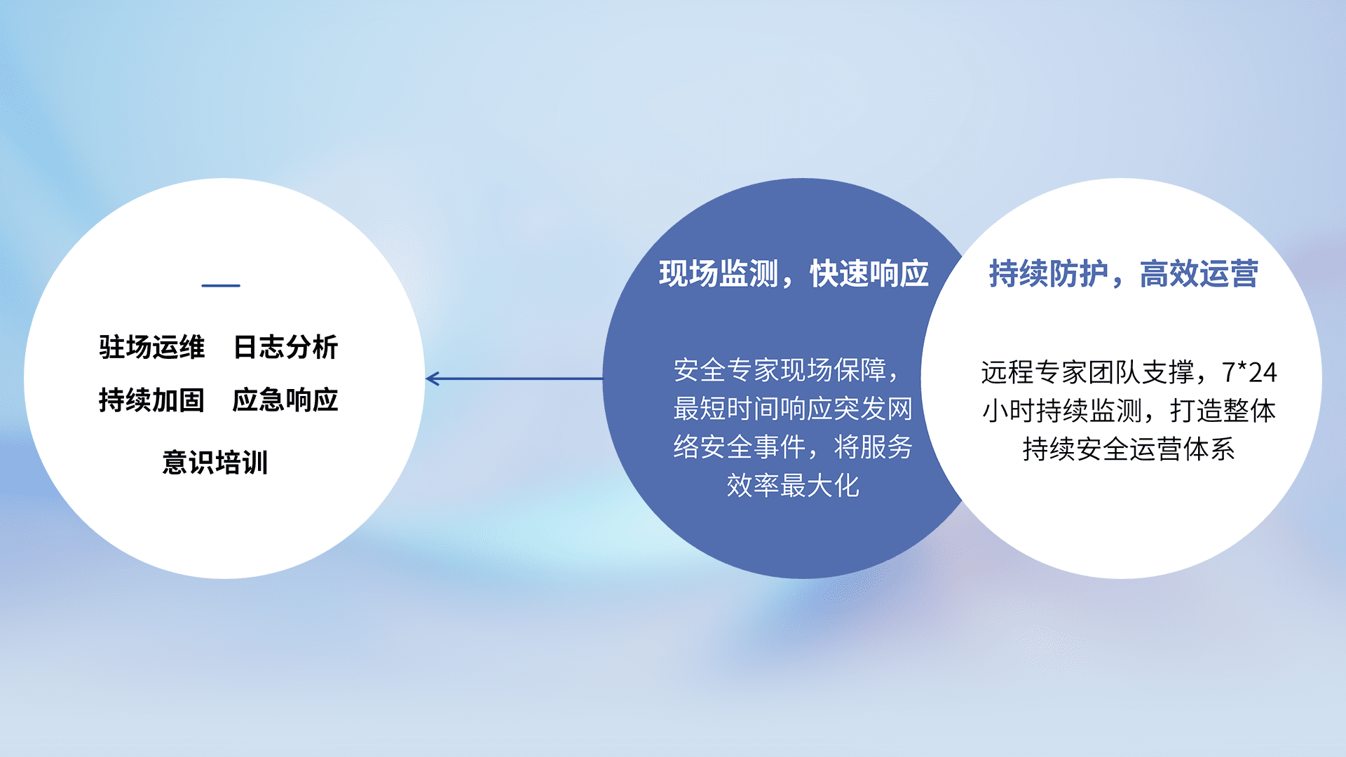 针对客户行业特性,,提供专属的一站式安全管理服务,,帮助客户全面感知网络空间威胁,,通过安全专家的线上、、、线下防护支持,,实现风险闭环,,,将安全保障常态化,,,为客户打造常态化安全运维运营服务。。。。